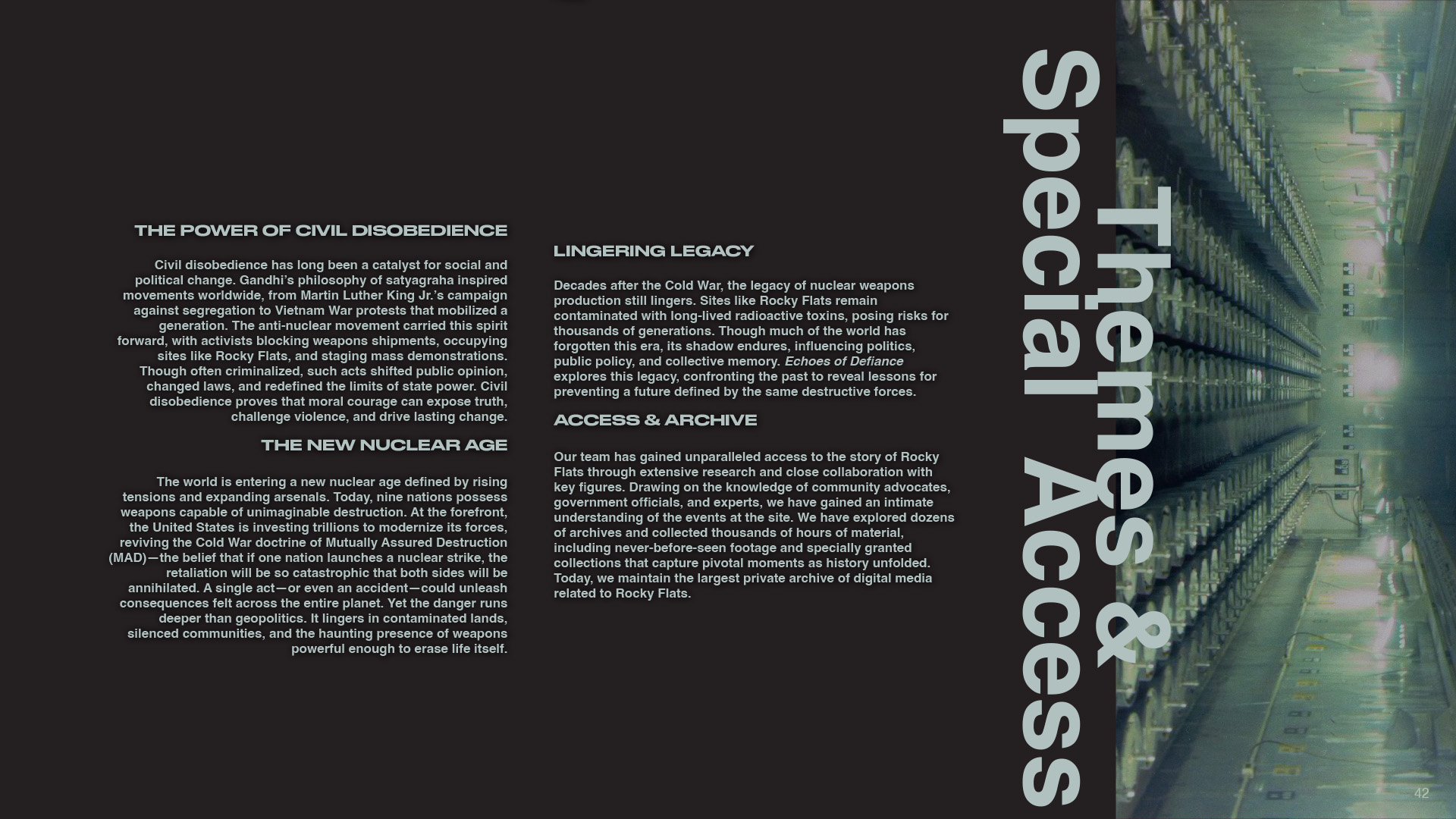 Through powerful testimonials and extraordinary archival media, Half-Life Productions exposes Rocky Flats' dark past and prompts critical reflection on the implications of the nation's renewed nuclear weapons buildup.