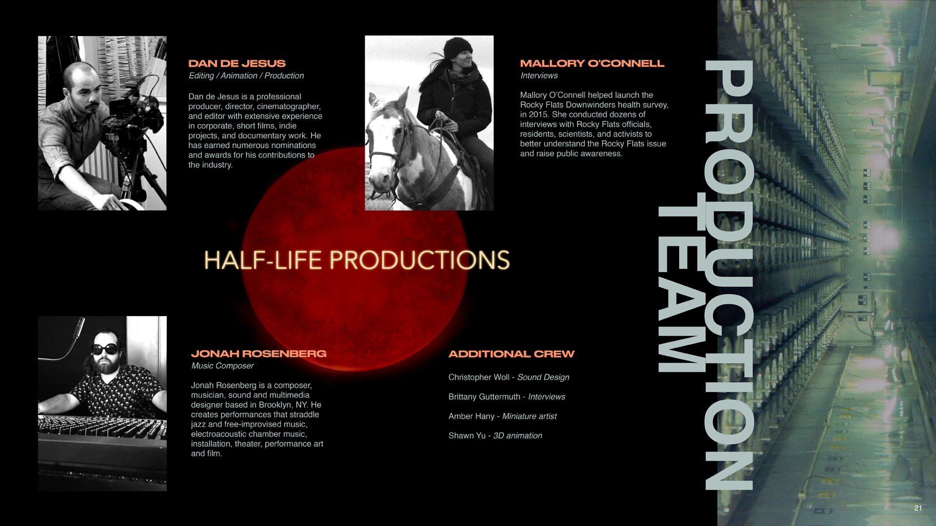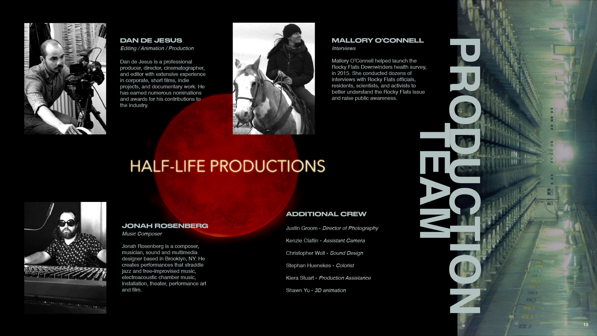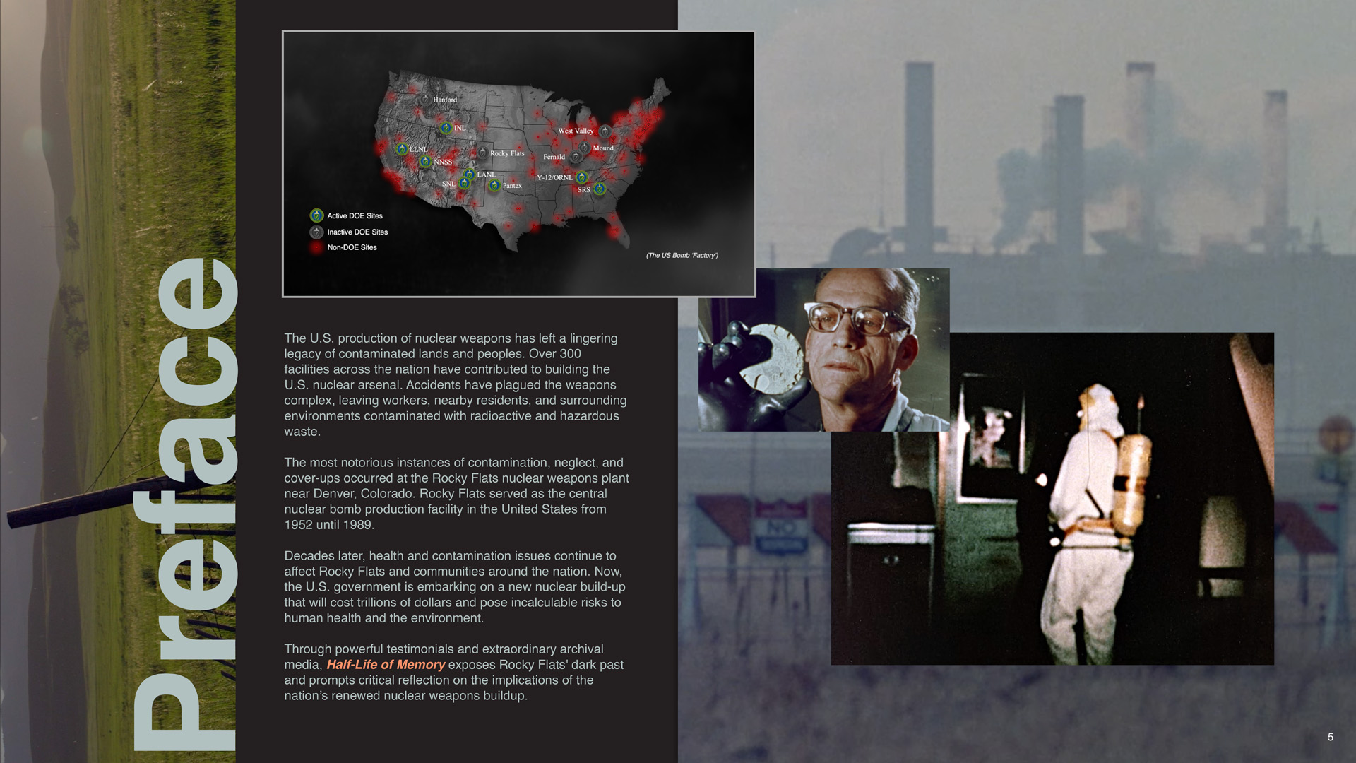 Through powerful testimonials and extraordinary archival media, Half-Life Productions exposes Rocky Flats' dark past and prompts critical reflection on the implications of the nation's renewed nuclear weapons buildup.